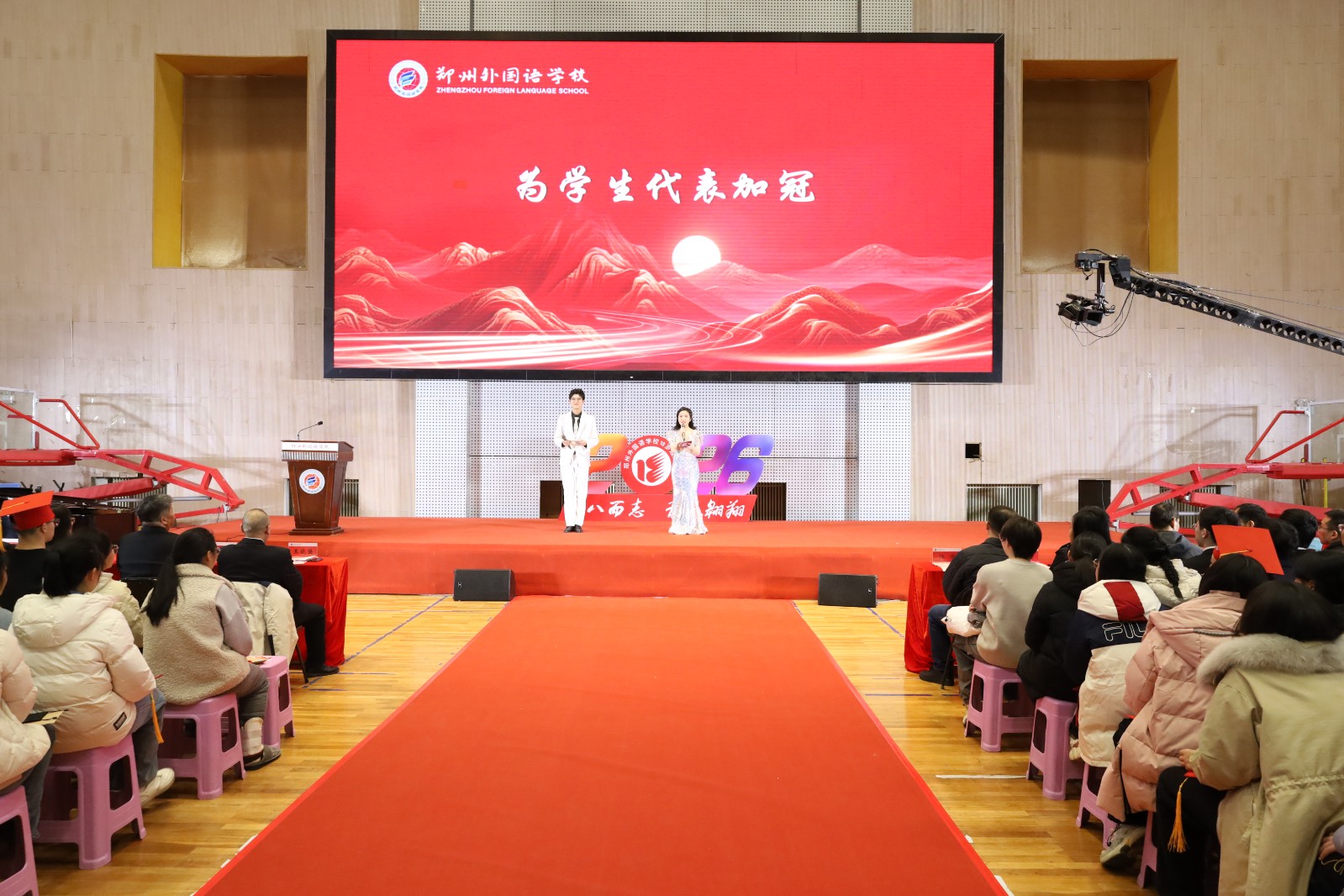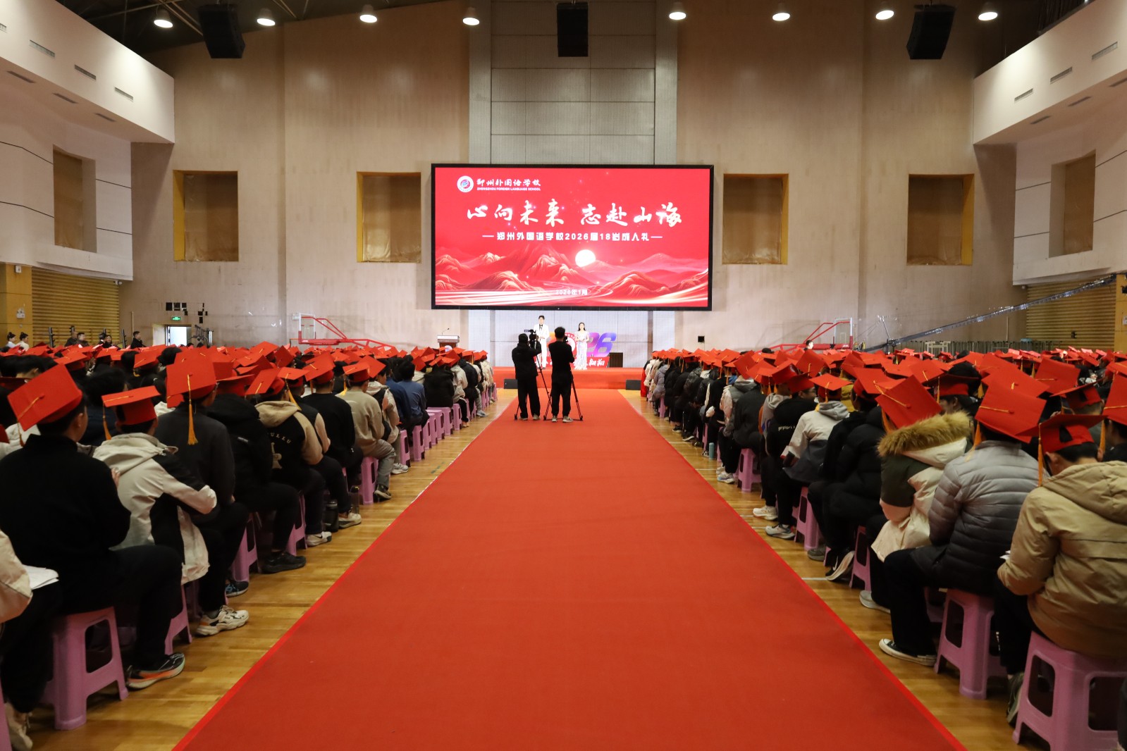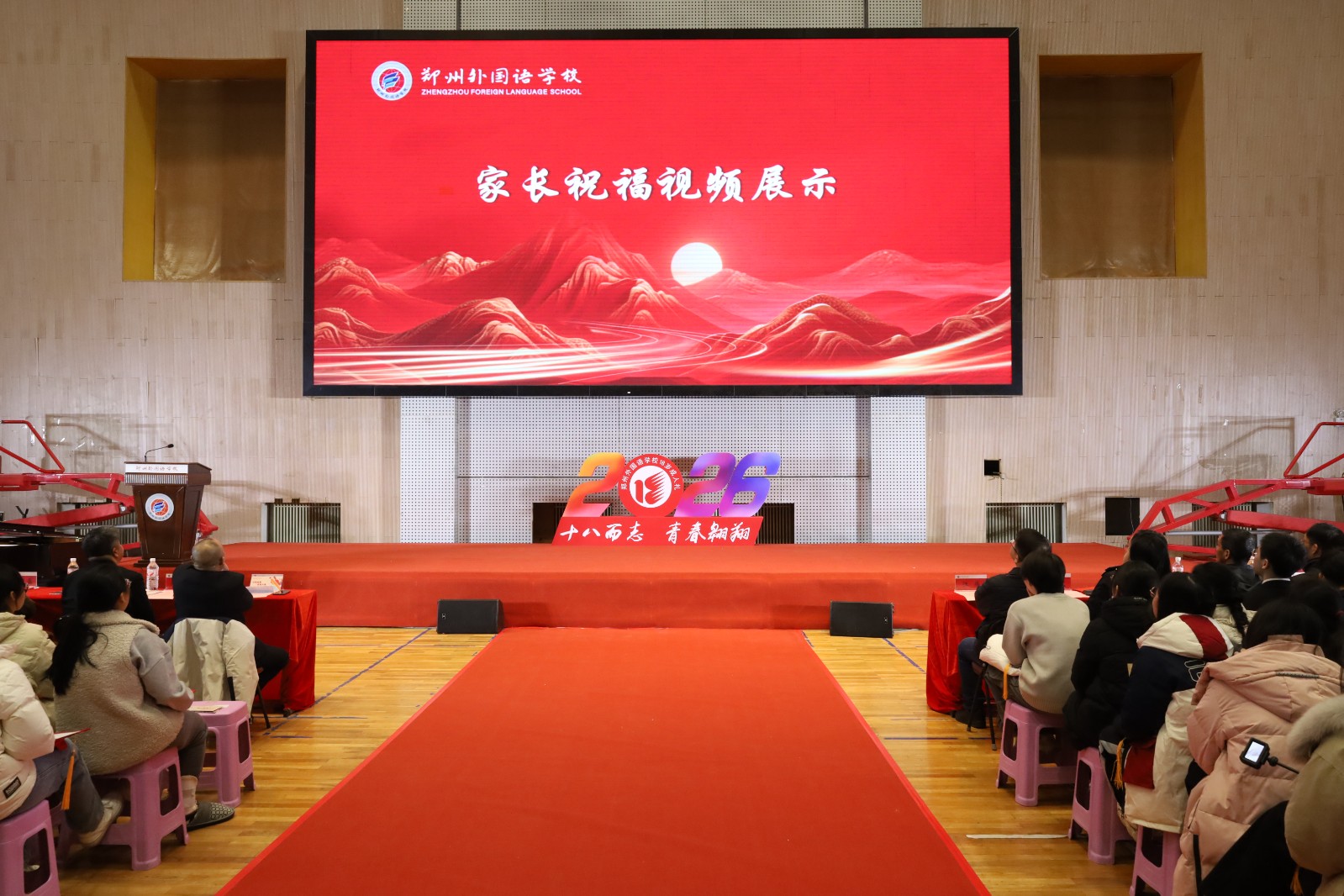 1月11日下午,郑州外国语学校体育馆二楼报告厅气氛庄重而温暖,“心向未来 志赴山海”2026届学生18岁成人礼在此隆重举行。学校领导、高三全体师生及家长代表共同见证了这一重要时刻。