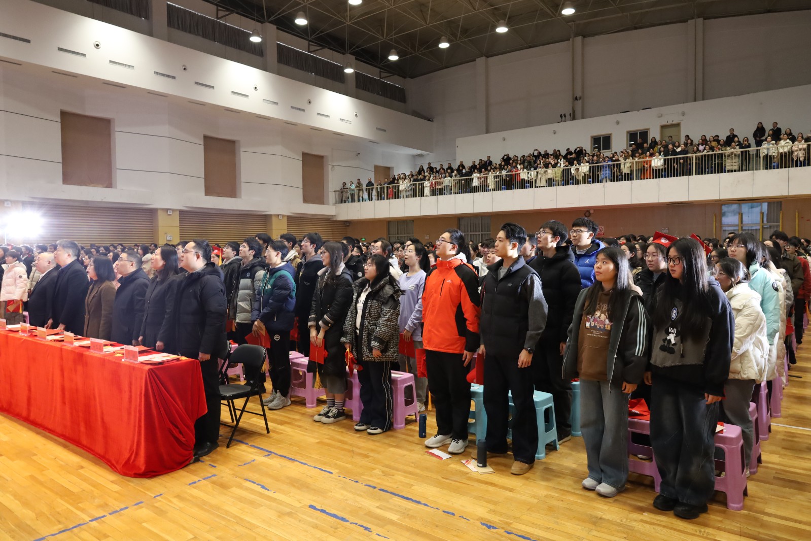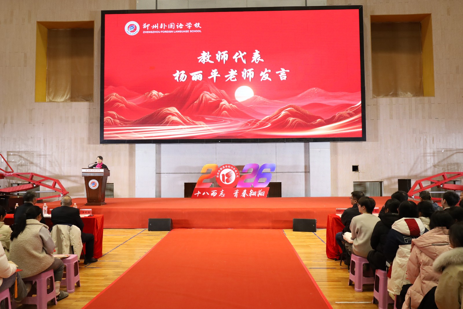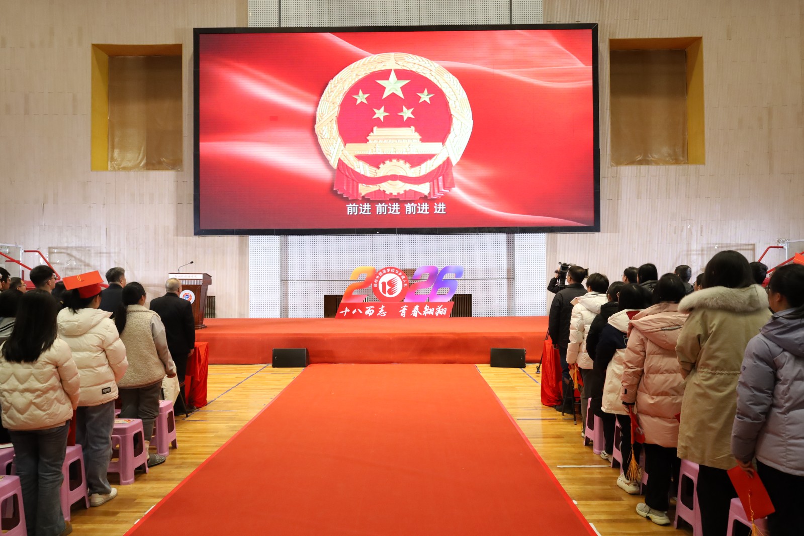1月11日下午,郑州外国语学校体育馆二楼报告厅气氛庄重而温暖,“心向未来 志赴山海”2026届学生18岁成人礼在此隆重举行。学校领导、高三全体师生及家长代表共同见证了这一重要时刻。