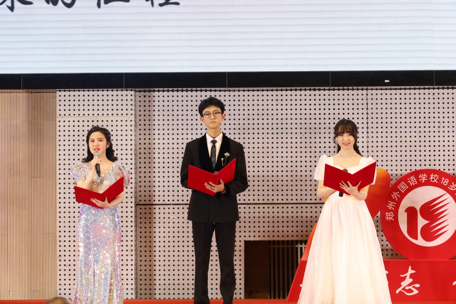 在“青春礼赞”环节,学生代表深情朗诵诗歌《最好的十八岁》,极光合唱团与乐队共同演绎《星辰大海》,歌声激昂,展现了郑外学子对未来的憧憬与奔赴梦想的勇气。