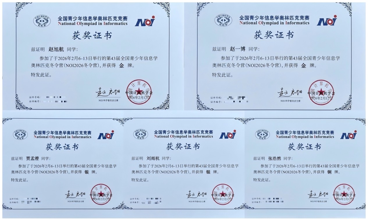 在刚刚结束的全国青少年信息学奥林匹克竞赛(NOI2026)全国冬令营中,郑外学子表现出色,斩获2金2银1铜,全员获奖。创造了我省在NOI冬令营赛事中取得的历史最好成绩。